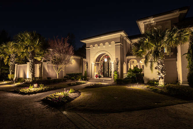 Driveway entrance lighting in Atlanta can do a lot more than make the concrete brighter. With a layered design, it can highlight the best parts of your property and give your home a polished, finished look from the street. Instead of only lighting the drive itself, we often use light to draw attention to: