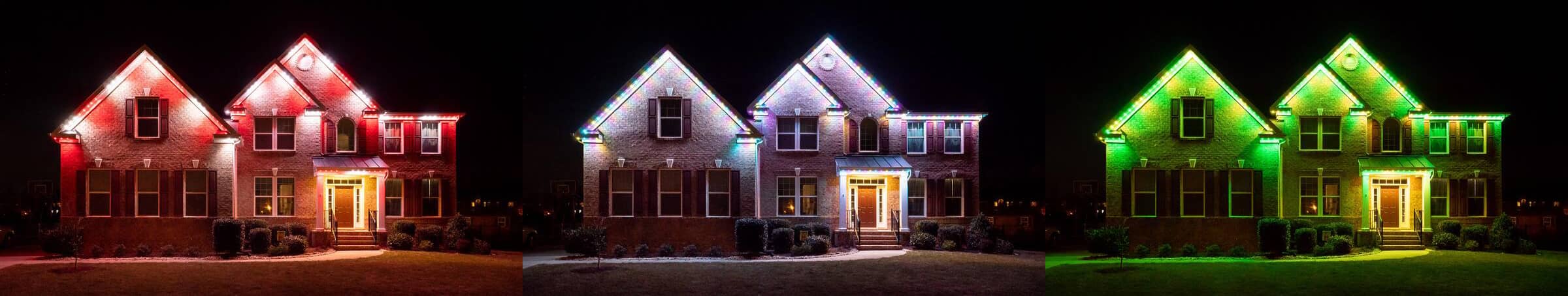 This colorful and trending genre of outdoor lighting consists of LED roofline lighting that stays up year-round. Using cutting edge technology and an easy-to-use app, you can customize your permanent roofline lighting from the palm of your hand. Create your own color sequences and light animations to enliven any holiday, or occasion by just pressing a button. We are an authorized dealer and offer permanent roofline lighting with unbeatable warranties, energy-efficient LEDs, and effortless customization.