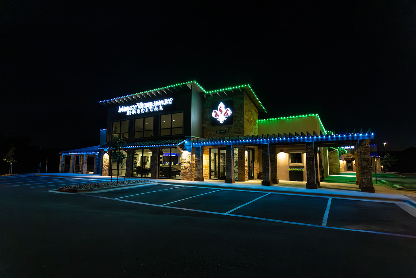 Our roofline lighting systems give businesses control over their nighttime look. The ability to change colors, schedules, and patterns lets businesses set a consistent look for every day. Lighting can be adjusted for different seasons and promotions as well.