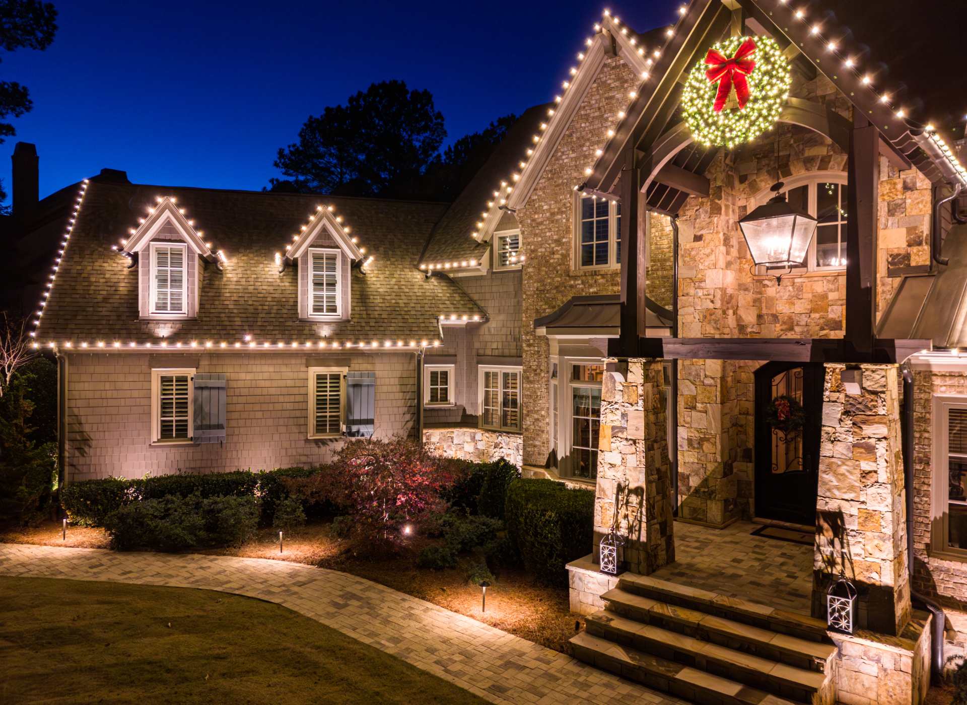 All installations harmonize seamlessly with your existing landscape lighting and deck & patio lighting, creating cohesive, multi-layered designs that elevate your home’s nighttime presence—not just for a season, but with year-round style.