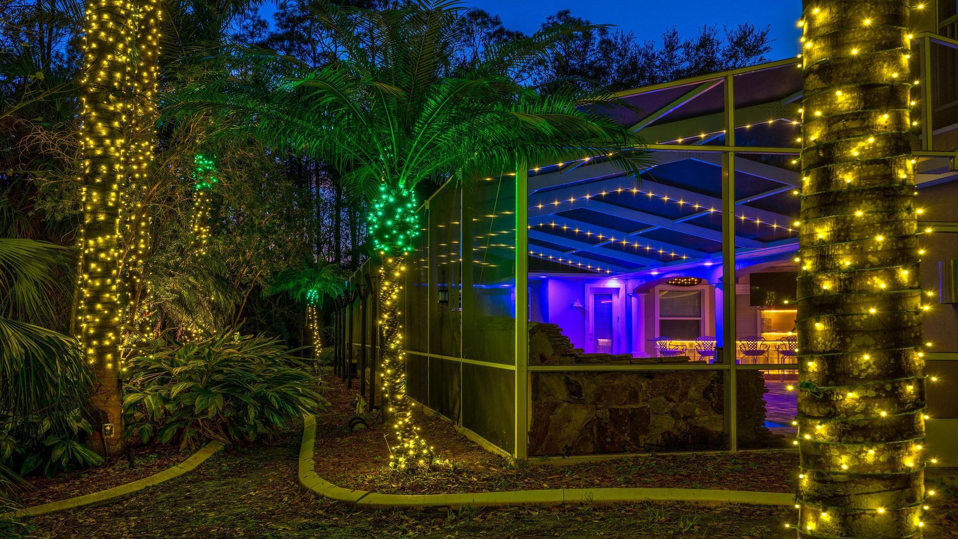 Relaxed walkways, patios, and garden areas come alive with Festive String Lighting, which drapes overhead to create cozy, ambient light. And for dynamic, color-shifting effects that evolve with each celebration, our color-changing lighting systems let you switch hues for any holiday or personal event.