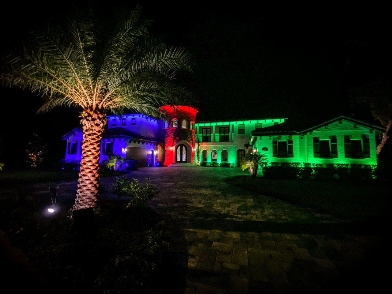 Speaking of having a wide array of different lighting fixtures to fit any outdoor lighting project, did you know we have color-changing outdoor lighting and landscape lighting options? The fixtures themselves may look like our typical brass or copper fixtures, but they have an exponentially greater impact on your home's appearance after dark. The color options are nearly endless and they're controlled by an easy-to-use app. So, you can play around and find out which level of white saturation you like most, or you can create a festive appearance for your home - this is especially great during any holiday or if you're wanting your home and landscape to represent your favorite sports team's colors!