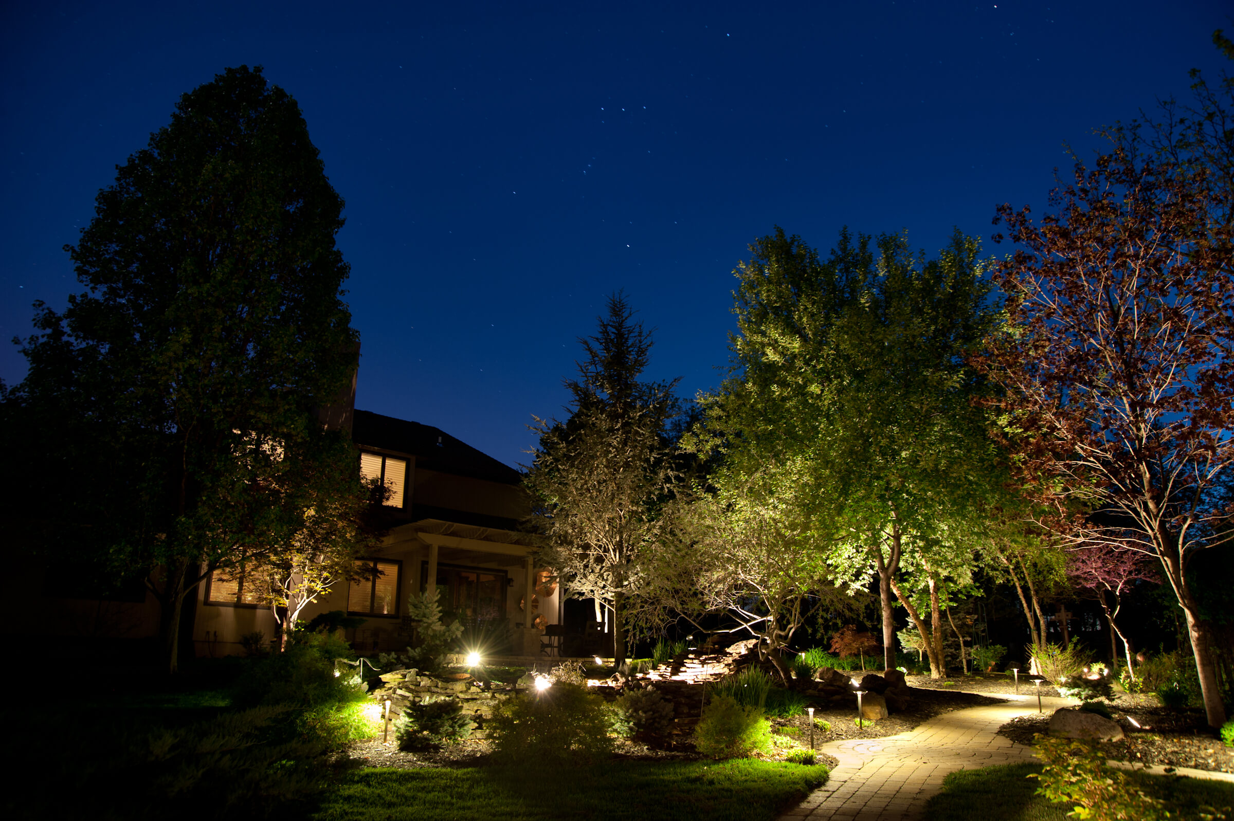 Marshall installed new LEDs and converted old halogen lights throughout his backyard, including 20 floodlights and 12 path lights.