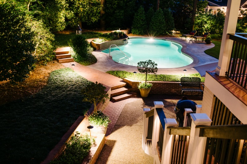 When you’re facing a new landscape design or a pool/deck/patio addition, you are prepared for a messy construction phase. Depending on your yard and location of your project, you may be facing quite a bit of remediation to your existing landscape once the project is complete. Adding outdoor lighting to your project while it is being built is the best way to make sure this landscape remediation is a one-time thing. Our talented installation team can work alongside your construction crew or landscaper to make sure our lights are installed and our lines are buried at the most opportune time. This also affords us more flexibility in design as we can work within the construction phase to add lights in places that may not be possible after the project is complete.