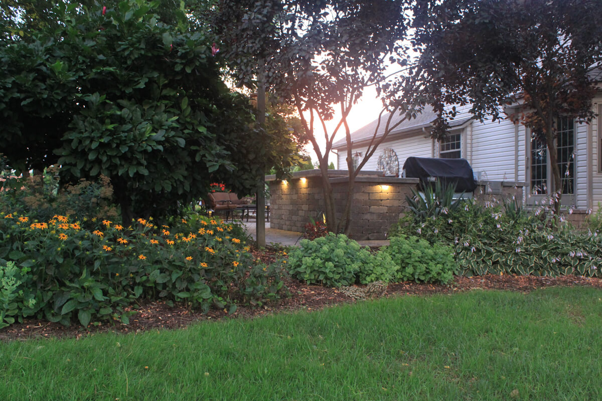 Today’s patios feature stunning paver bricks and stones to create patio walls, floors and fire pits. At Outdoor Lighting Perspectives, we offer outdoor lighting that can be mounted right in between the layers of pavers on your vertical hardscape structures. Hardscape Lighting is perfect for underneath patio wall capstones and counter/bar tops.