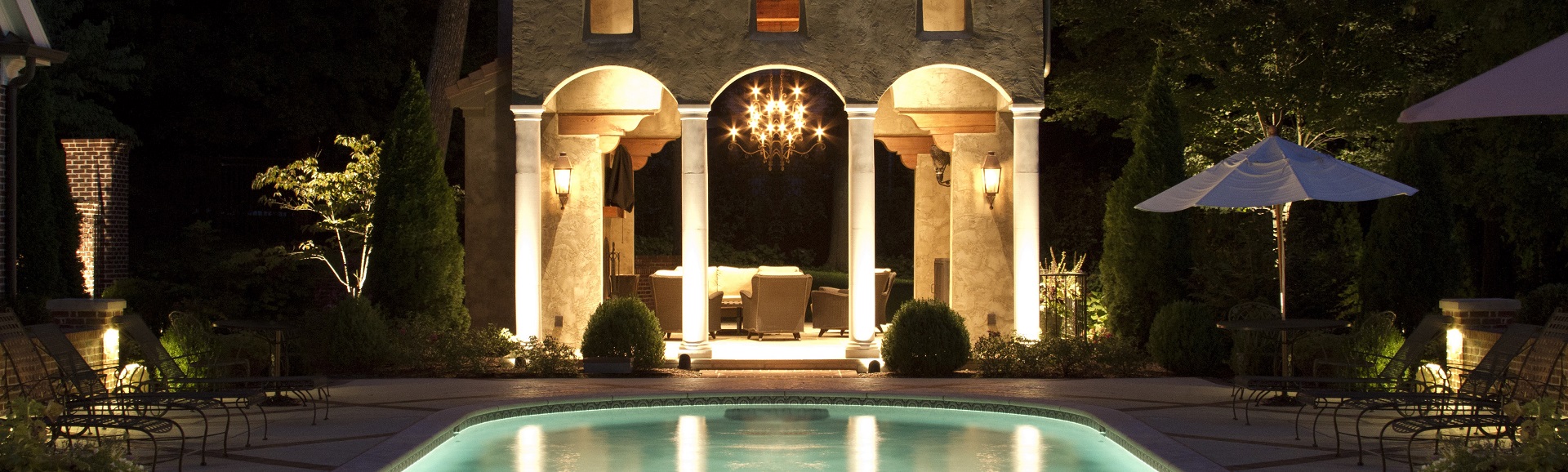 Lighting adds space: That’s right – Our customers tell us time and time again how much functional space lighting will reveal. “It’s like that part of my yard didn’t existing at night because it’s not lit up at night”. For an outdoor party, this is an important benefit. You don’t want your guests on top of each other when there’s plenty of room just begging for illumination. Proper lighting can really open up that area for use and allow guests to “spread out in the space” comfortably. Consider an outdoor event under a tent. If only the tented area is illuminated, everyone will stay under the tent. But, perhaps there’s adjacent functional landscape area or even a gazebo or patio which could double as a dance floor. Lighting extended areas within your landscape will encourage guests to use the areas beyond your primary location adding space to your event location.
