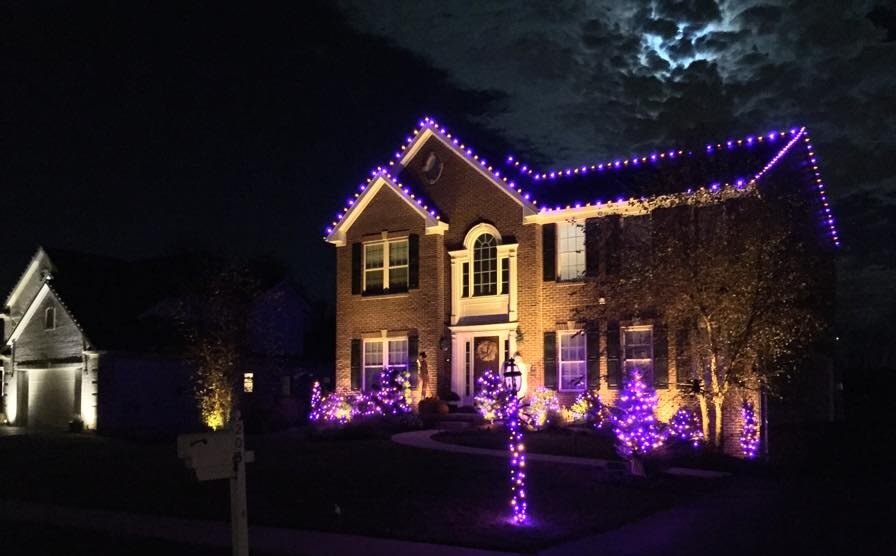 String lights aren’t just for Christmas. Outdoor string lights are common during the winter holidays, but they can be used for other holidays too! Instead of the traditional holiday hues of red and white, mix it up for some fun to celebrate Halloween with purple, orange or green. We can wrap your trees, porch columns, along your stairs or even overhead. The dark glow it gives off will be perfect for your trick or treaters.