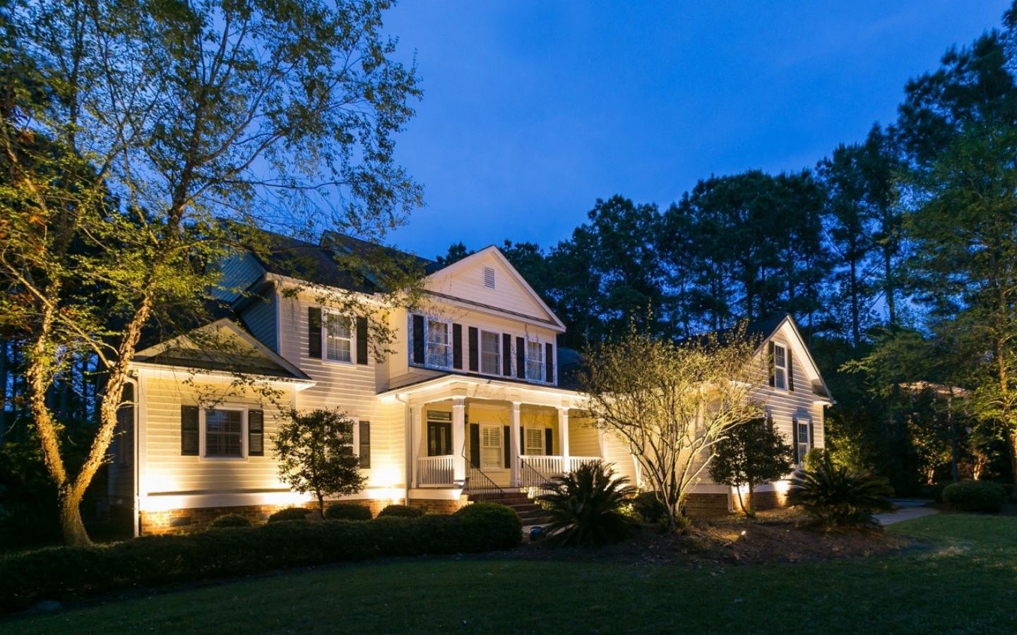 - Moonlighting – Mounting fixtures high in trees to create a soft, natural glow that mimics moonlight filtering through the branches.