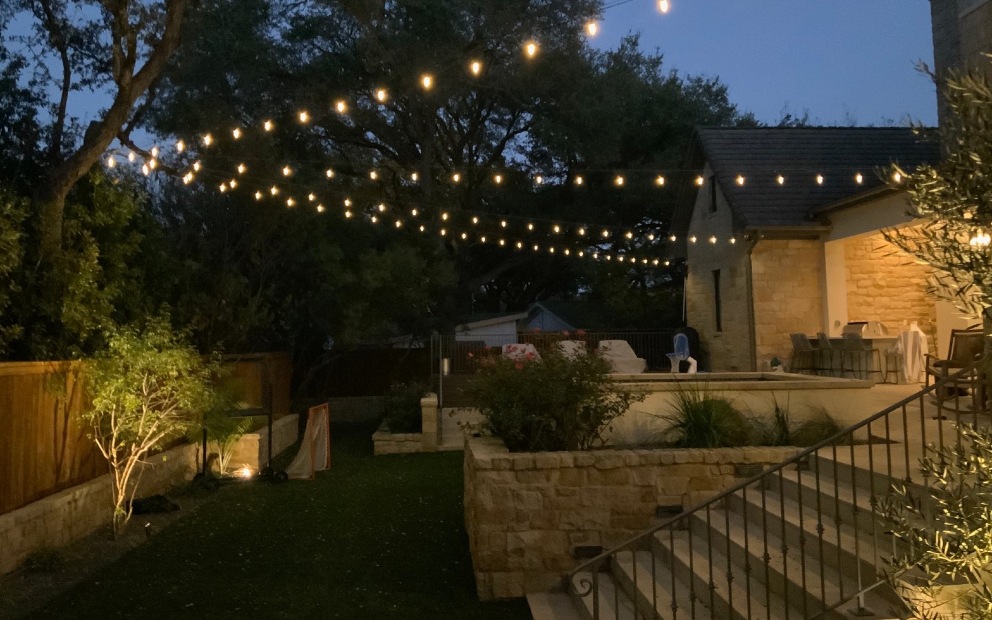 String lighting is a versatile option that adds a touch of magic to outdoor spaces. Ideal for patios, pergolas, or outdoor dining areas, string lights create a warm, inviting ambiance perfect for entertaining guests or enjoying a quiet evening under the stars. While string lighting may seem like a simple DIY project, professionally installed string lights from Outdoor Lighting Perspectives offer a level of sophistication and durability that DIY setups often lack. Our team handles everything from design to installation, making sure that the lights are securely placed.
