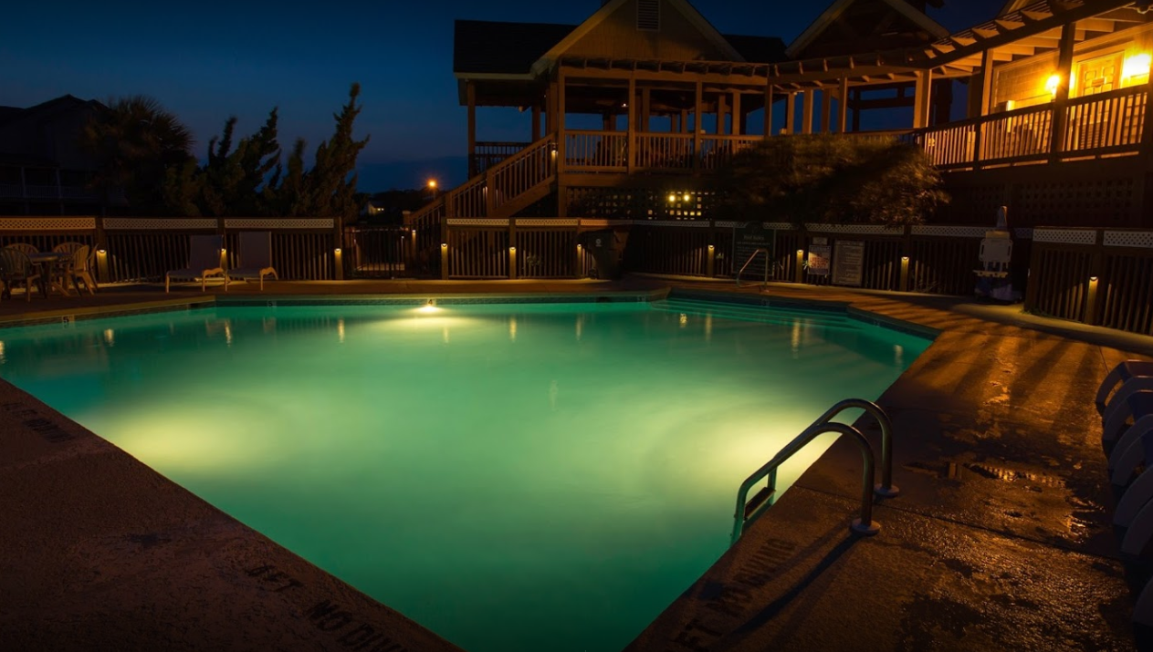 We have the glorious pleasure of serving all of North Carolina’s coastal communities. From Kure Beach to Carolina Beach and Wrightsville the tourist season is a short one. From Memorial Day to Labor Day, businesses on the beach need to get as much revenue and profit as possible. If you’re in the hospitality business and you have a pool, your vacationers will want to be in it after the sun goes down. It is inevitable. Don’t keep your pool closed from dusk until dawn – give your guests a reason to come back again and again by giving them access to a lovely, well-lit pool after the sun sets.